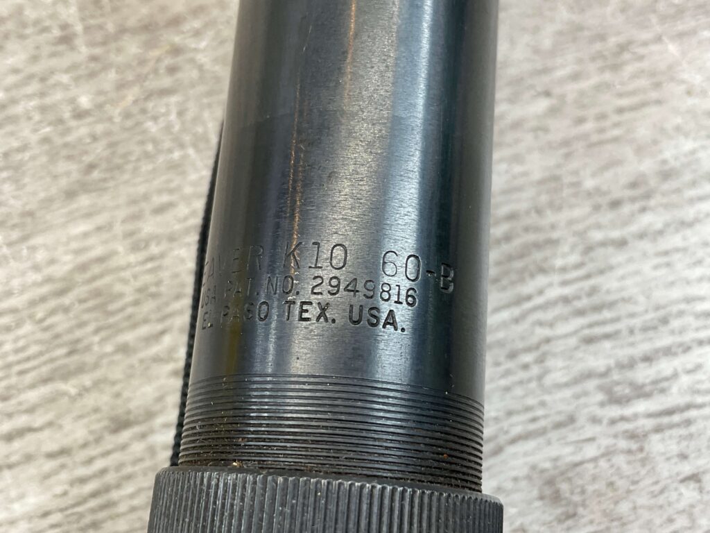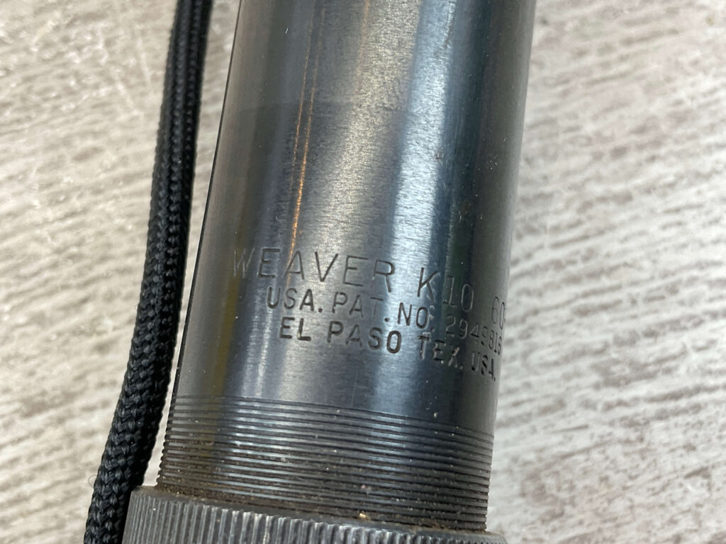 WEAVER K10 60-B CROSSHAIR SCOPE, VINTAGE, INCLUDES CARRYING STRAP, MARKED “WEAVER K10 60-B / USA. PAT. NO.2949816 / EL PASO, TEX, USA.”, IN VG-EXC CONDITION.