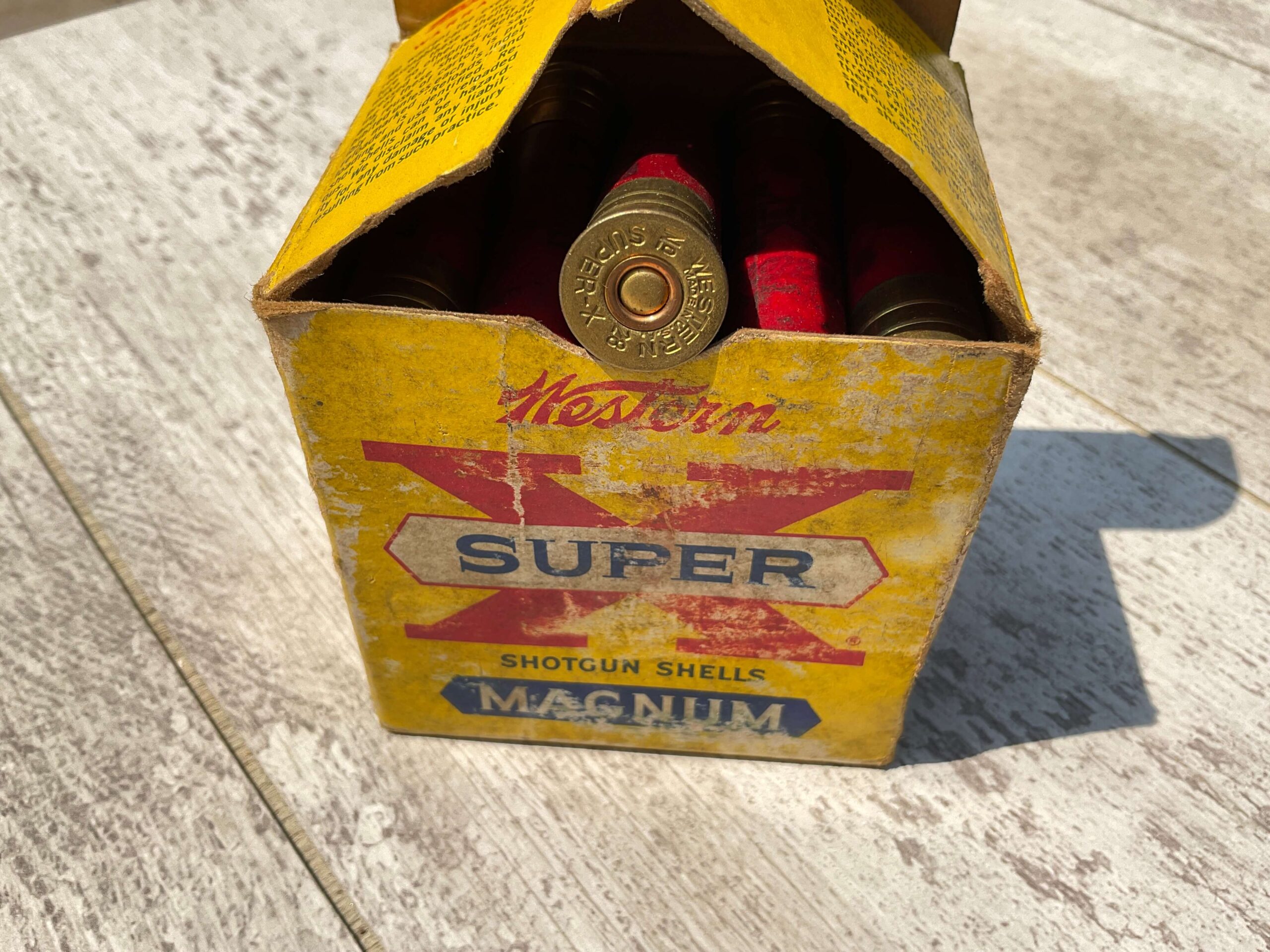 VINTAGE WINCHESTER 28 GA WESTERN SUPER X SHOTGUN SHELLS, SHORT SHOT STRING, MAGNUM, ORIGINAL LONG RANGE LOAD! QTY 25