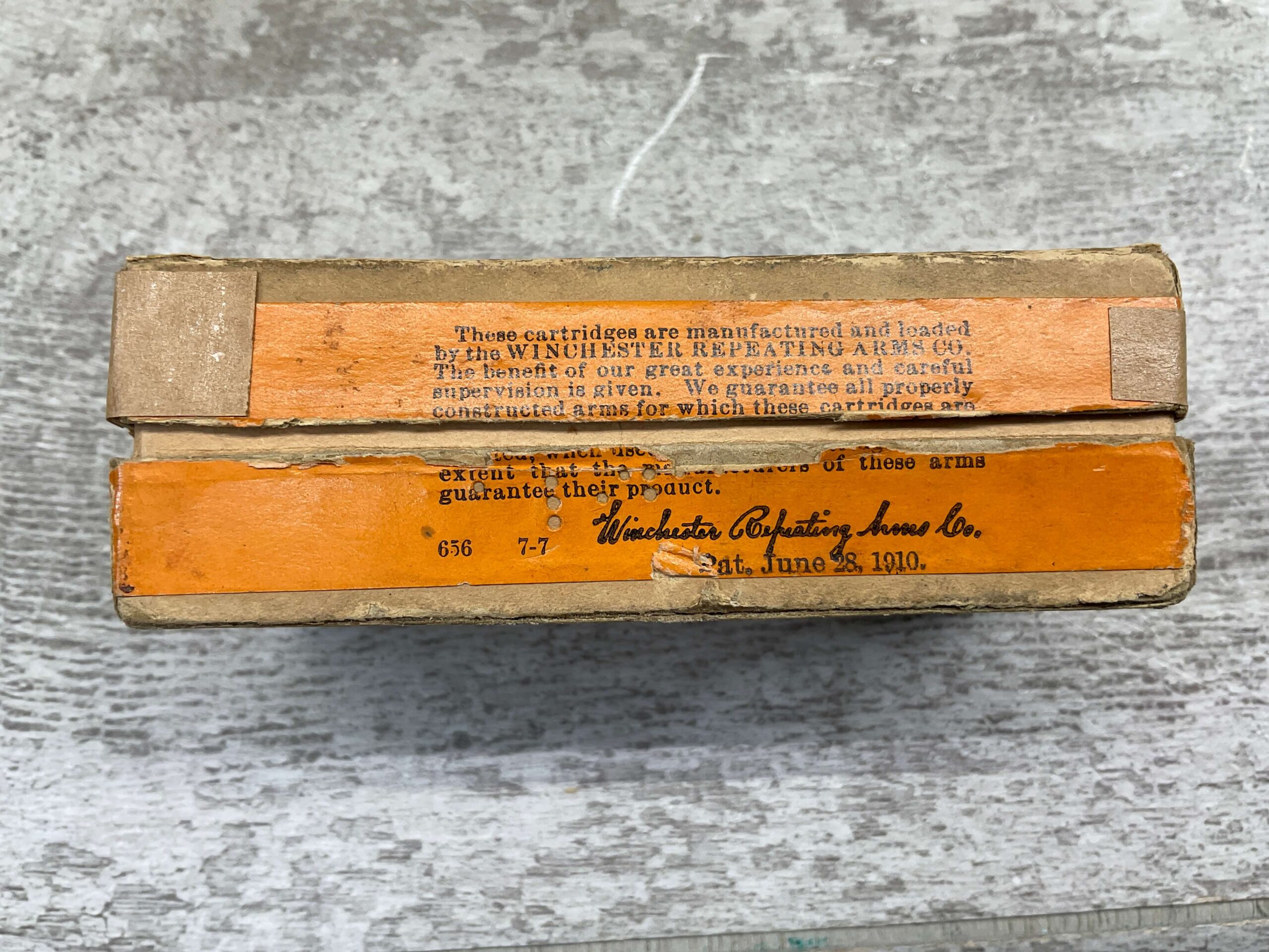 WINCHESTER .38 CAL S&W CENTER FIRE CARTRIDGES, VINTAGE, RARE, QTY 18, BOX IS IN GREAT CONDITION FOR AGE, NO MISSING PARTS OF BOX