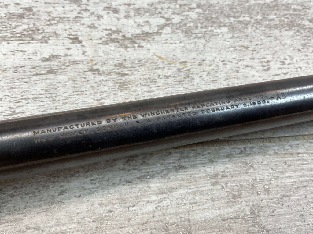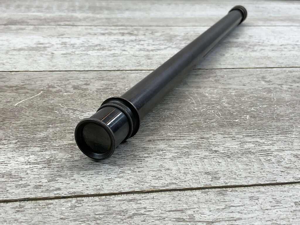 WINCHESTER A5 CROSSHAIR SCOPE, VINTAGE, RARE, LENGTH: 15 3/4″, MARKED “MANUFACTURED BY WINCHESTER REPEATING ARMS CO. / NEW HAVEN, CONN. U.S.A. PATENTED FEBRUARY 9, 1909 -A5”, IN VG CONDITION WITH SOME LIGHT WEAR AND VERY LIGHT SCRATCHES.