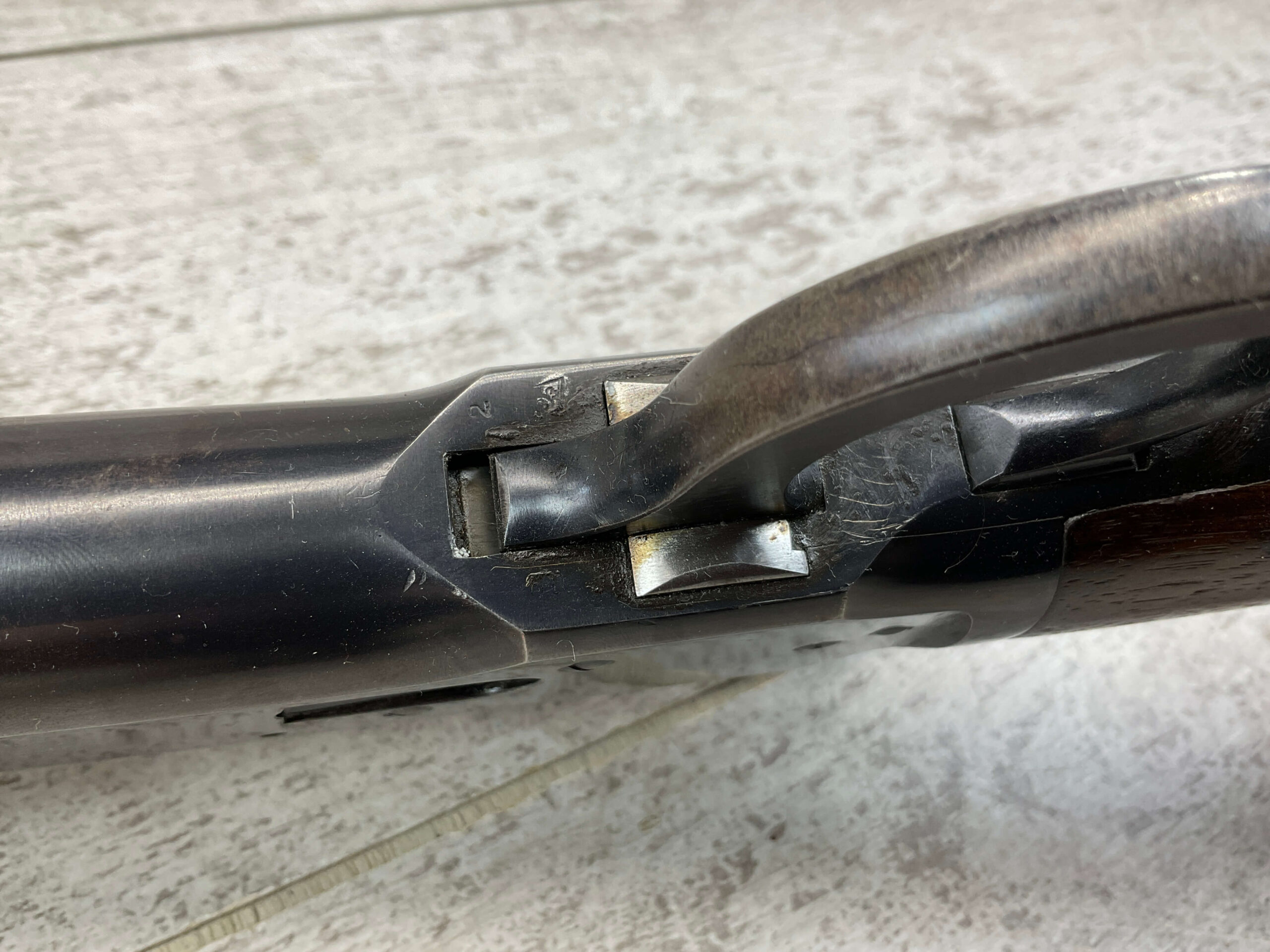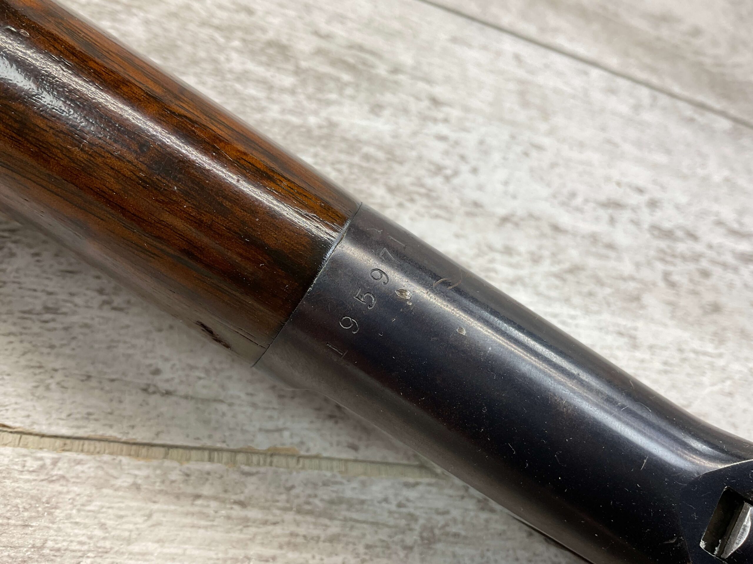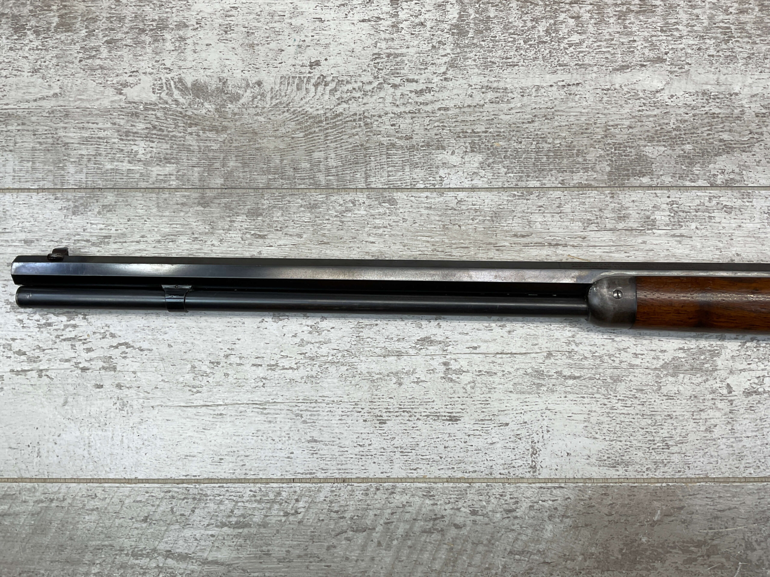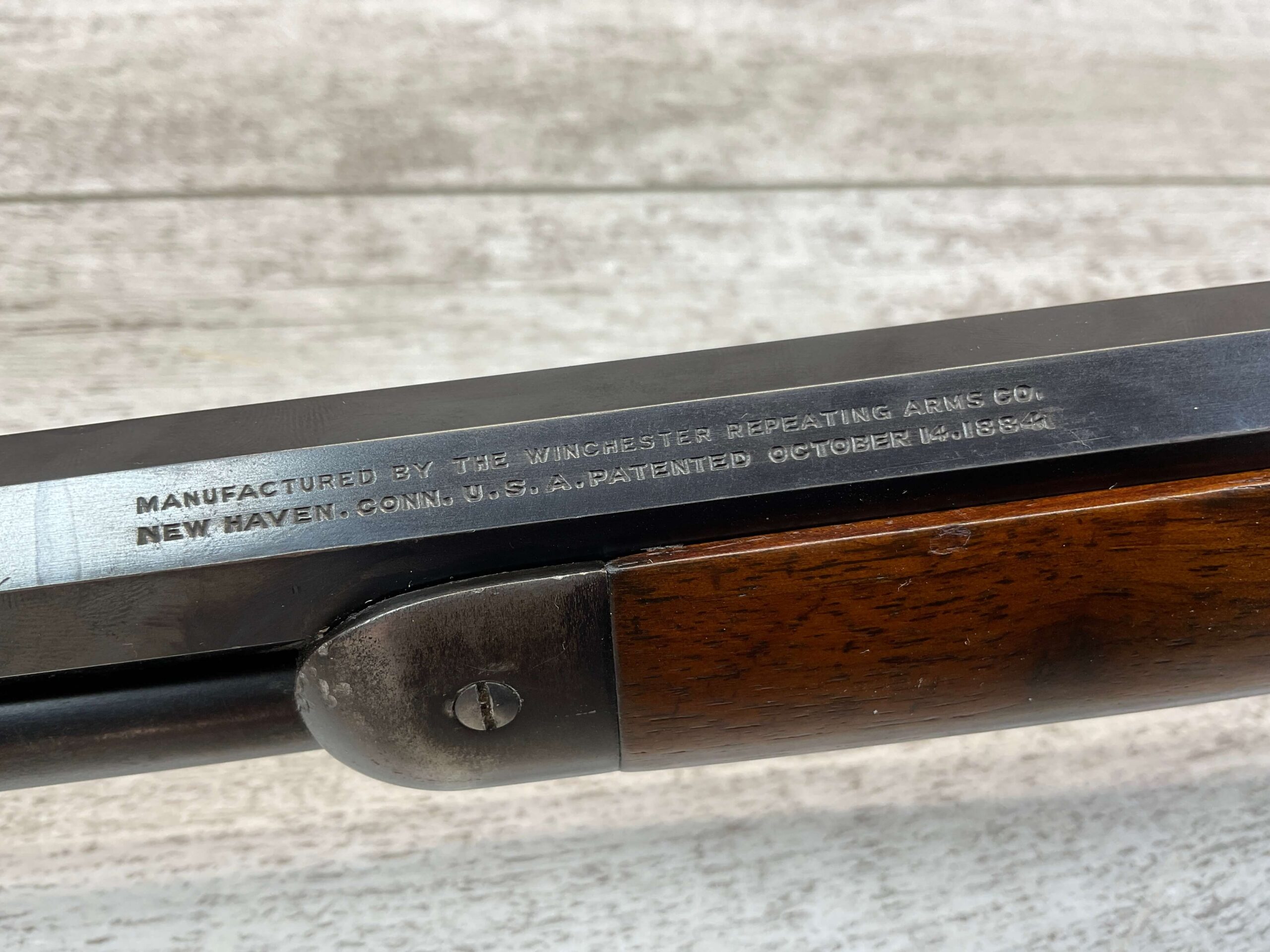 WINCHESTER MODEL 1892 .25-20 WCF LEVER ACTION RIFLE, 1902 MFR #195971, 24″ OCTAGON BARREL, VERY GOOD BORE W/STRONG RIFLING, FULL MAGAZINE, 95+% BLUE REMAINING W/LIGHT PIN PRICKING & LIGHT SCRATCHES FROM AGE, EXC WOOD W/NO CHIPS OR CRACKS, CRESCENT STEEL BUTTPLATE, EXC ACTION, 90+% OVERALL