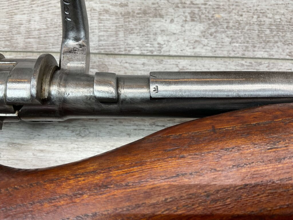 YUGO M48A 8MM BOLT ACTION SHORT RIFLE #r 24130, 8MM MAUSER, MANUFACTURED “RED FLAG FACTORY”, EVERYTHING MATCHES BESIDES THE BOLT, LIGHT CAI IMPORT MARK ON R SIDE OF BARREL, YUGO CREST ON TOP OF RECEIVER, PREDUZECE 44 STAMP ON LEFT SIDE OF RECEIVER, 23.5″ BARREL, EXC WOOD W/LIGHT NICKS & DINGS, 95% BLUE, 5 ROUND CAPACITY, FRONT SIGHT HOOD, BAYO LUG, CLEANING ROD, STEEL BUTTPLATE, BRIGHT BOREÂ W/EXC RIFLING & SCATTERED PITTING THROUGHOUT, 95% OVERALL
