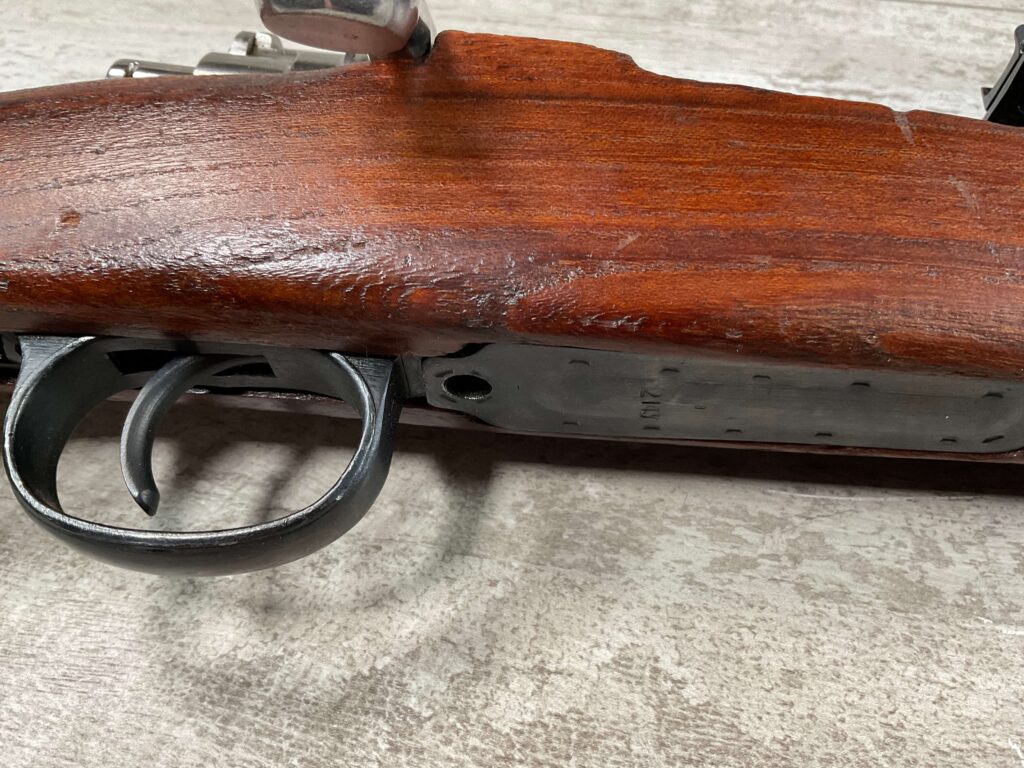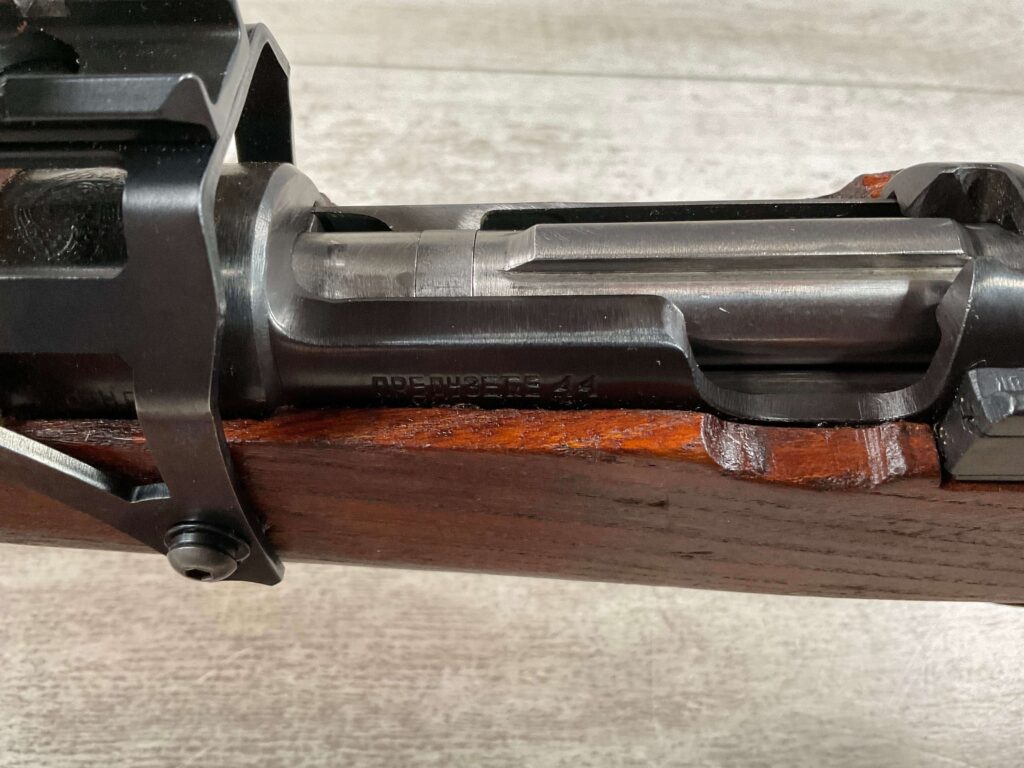 YUGO M48A 8MM BOLT ACTION SHORT RIFLE #21430, 8MM MAUSER, MANUFACTURED “RED FLAG FACTORY”, EVERYTHING MATCHES INCLUDING THE BOLT, NO VISIBLE IMPORT MARK, YUGO CREST ON TOP OF RECEIVER, PREDUZECE 44 STAMP ON LEFT SIDE OF RECEIVER, 23.5″ BARREL, EXC WOOD W/VERY LIGHT NICKS & DINGS, 98+% BLUE, 5 ROUND CAPACITY, FRONT SIGHT HOOD, BAYO LUG, CLEANING ROD, STEEL BUTTPLATE, EXC BRIGHT BORE W/EXC RIFLING, BRASS STACKER SCOPE MOUNT, VORTEX CROSSFIRE II 2-7X32 SCOUT SCOPE, BRASS STACKER RLO CUSTOM LEATHER MAUSER AMMO CARRIER/CHEEK REST, BRASS STACKER RLO CUSTOM LEATHER MAUSER RIFLE SLING, TIMNEY MAUSER 98FN FEATHERWEIGHT TRIGGER, 95+% OVERALL